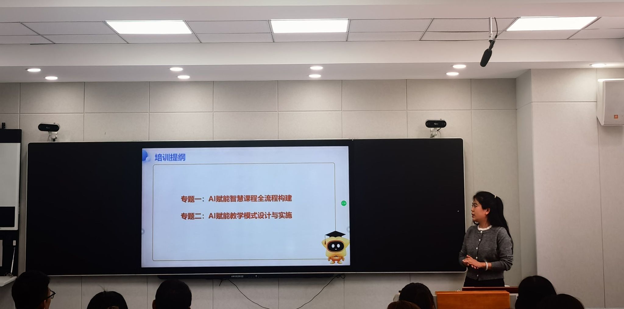 教务处副处长谢新颖对首批智慧课程建设项目教学团队提出要求,希望各教学团队加快推进智慧课程建设进程,推动AI技术与教育场景深度融合,助力学校建成一批高质量智慧课程。